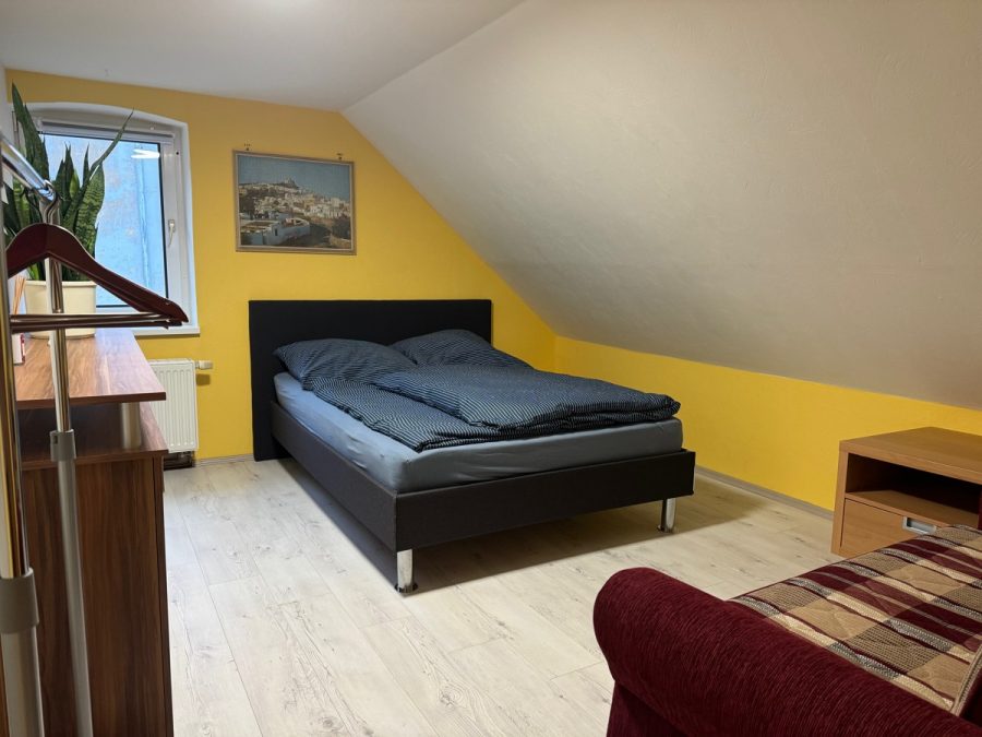 _geräumiges Schlafzimmer mit genügend Stellfläche für ein Doppelbett sowie Kleiderschrank