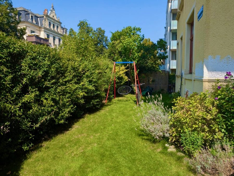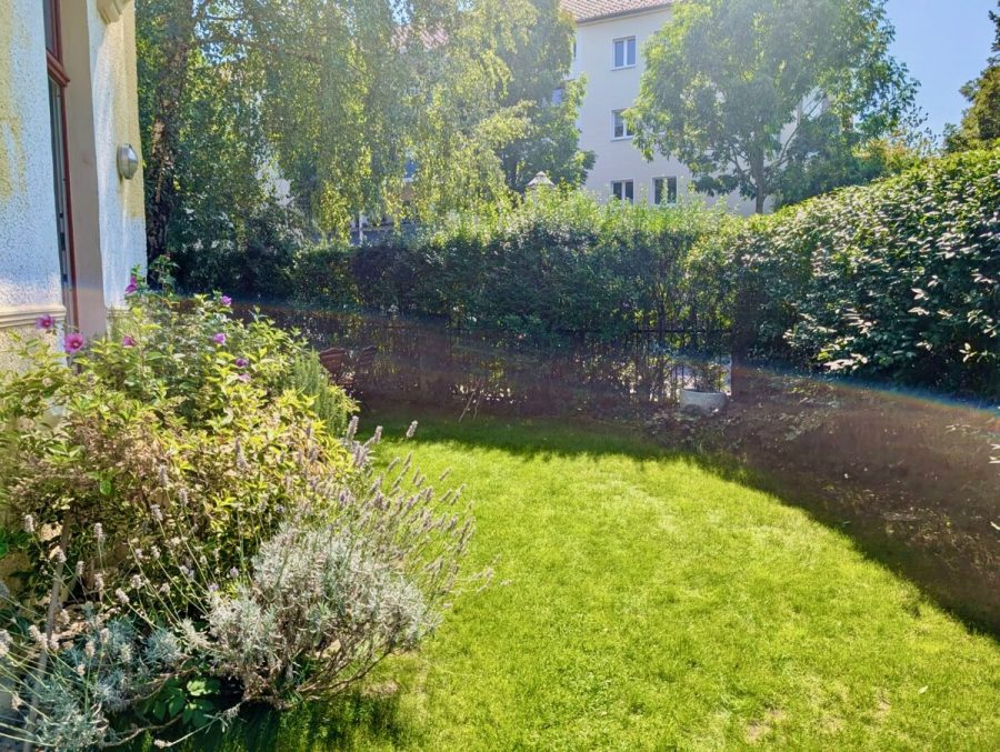 _Highlight: Der direkt vom Wohnzimmer ausgehende, private Garten - eine grüne Oase mitten in der Stadt – ideal für Kinder, Hobbygärtner oder entspannte Stunden im Freien