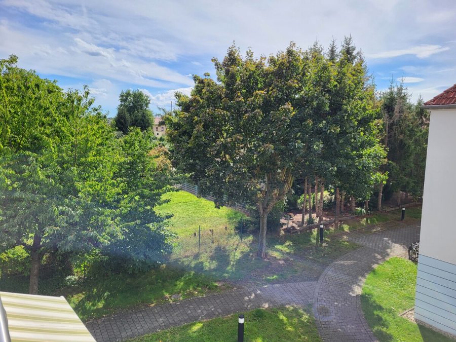 _angenehmer Wohnungsschnitt mit hoher Anzahl von Fenstern und Süd-Balkon mit Blick in den Innenhofbereich – ruhig und idyllisch